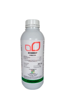 ECODROP Corrector: Es un producto destinado a la calidad agua del caldo, corregir el pH a valores donde mejor se desempeñan los fitosanitarios y se degradan más lentamente una vez mezclados con el agua. Además de ser tensioactivo, también cumple la función de secuestrar cationes con un agente acomplejante, bajando significativamente la dureza total.
