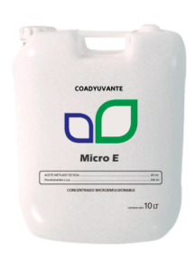 Micro E es un coadyuvante a base de aceite metilado de soja que, al incluirlo en el caldo de pulverización, forma una micro-emulsión termodinámicamente estable.