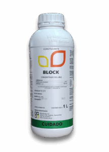 Block es un coadyuvante especialmente formulado para el acondicionamiento de aguas de pulverización duras y muy duras, que presentan elevadas concentraciones de cationes, como por ejemplo Calcio y Magnesio. Es un producto que agregado al agua secuestra cationes y regula el pH a los valores adecuados para el uso con la mayoría de los fitosanitarios.